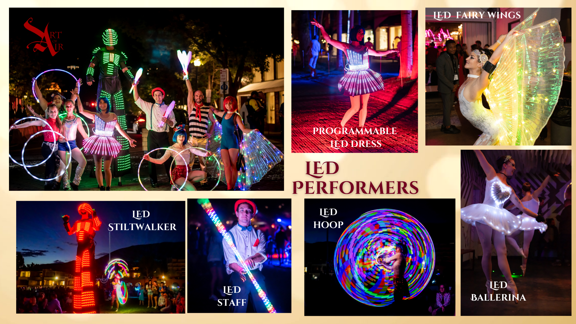 LED Performers: Dazzle your audience with our mesmerizing LED performers! Our skilled artists combine cutting-edge LED technology with captivating choreography to create stunning visual spectacles that leave a lasting impression.
