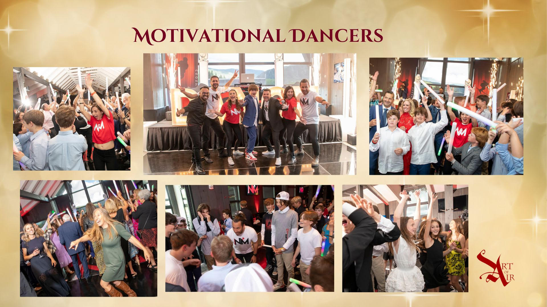 We have two types of motivational dancers. We can provide our entire motivational dance team for conferences and large stages. Set the tone for success at your conference with our motivational dance team. Wake up your audience with an uplifting 5-15 minute movement practice that will get hearts pumping and spirits soaring. The practice will incorporate easy to follow moves, elements of breath and motivational ideas which will energize your audience and create a vibrant atmosphere that fosters positivity and primes them for an impactful event.